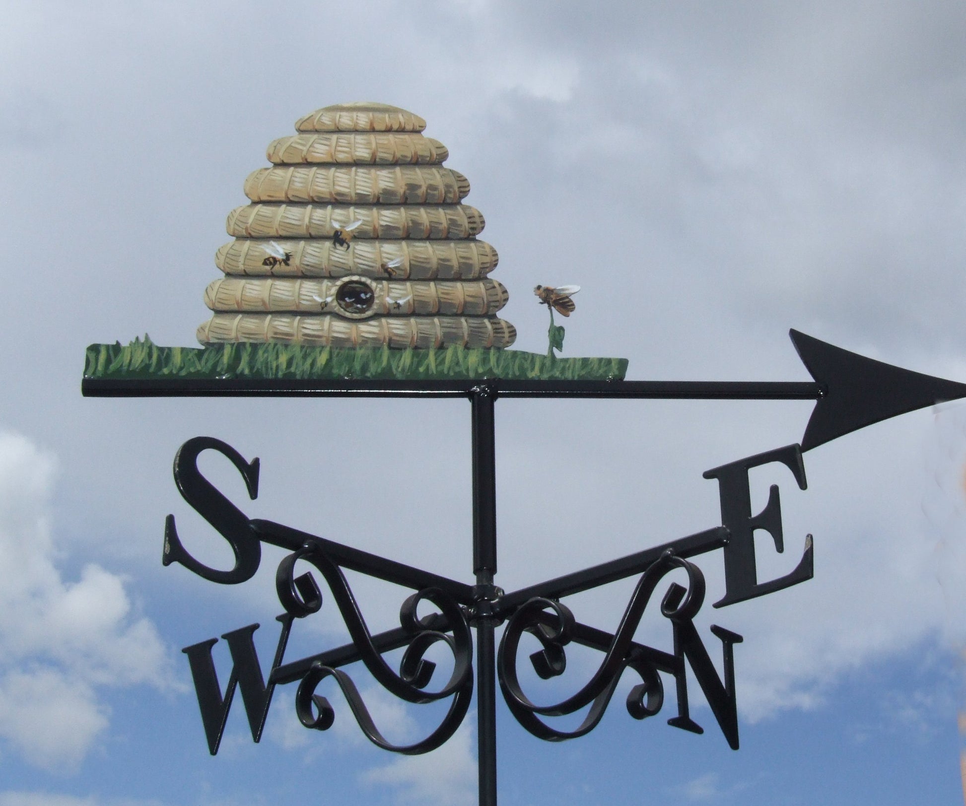 A Beautiful Hand Painted Beehive with a Bee Weather Vane