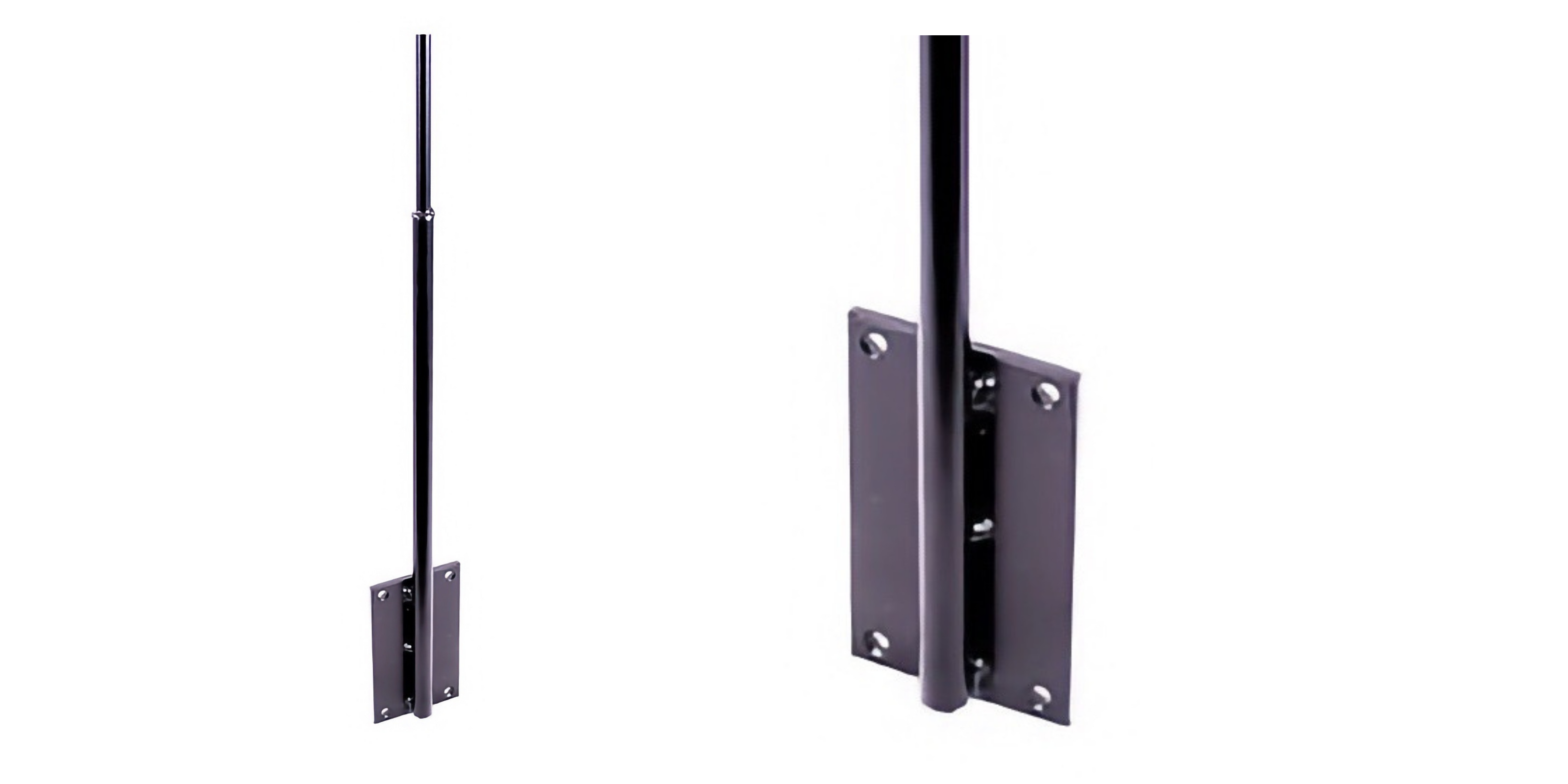 Side plate measuring 3" by 5" with four 8mm pre-cut holes, fixed to a steel mast with a 12mm diameter. If you are at all unsure, the Gable End is a more universal option for wall fixing.