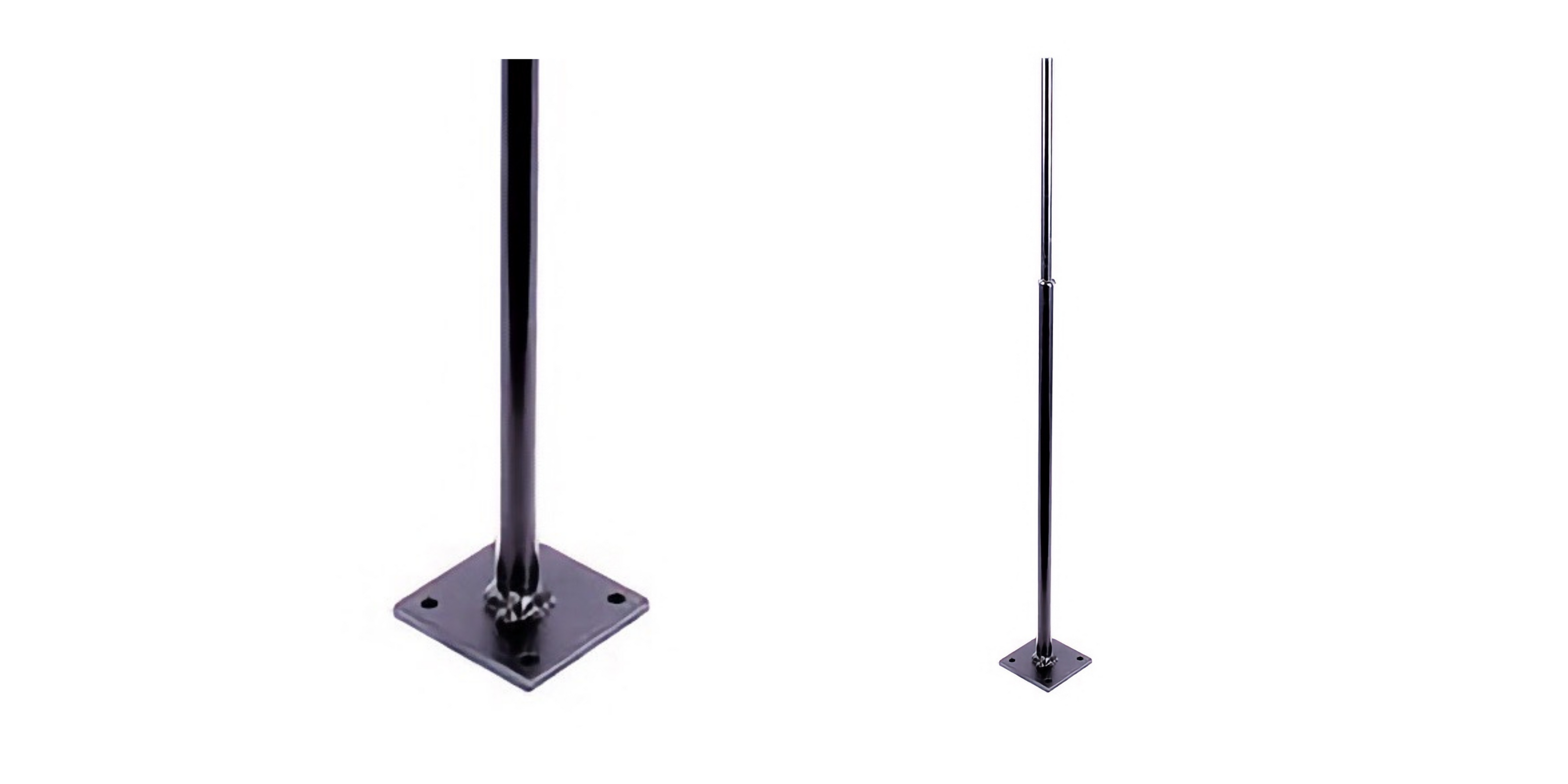 Design to go on top of a wooden or metal post, these are often used on fence posts, at the centre of gazebos or garden houses. This comprises of a 12mm diameter mast (8mm for Petite) with a 2.5" square plate of 5mm thick steel.