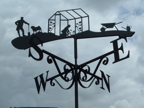 Measuring 40cm across the cardinal points N to S, this size is suitable for sheds, greenhouses pergolas, conservatories or small garages and outbuildings. Unlike our two larger sizes, Petite weathervanes have a single ended scroll.