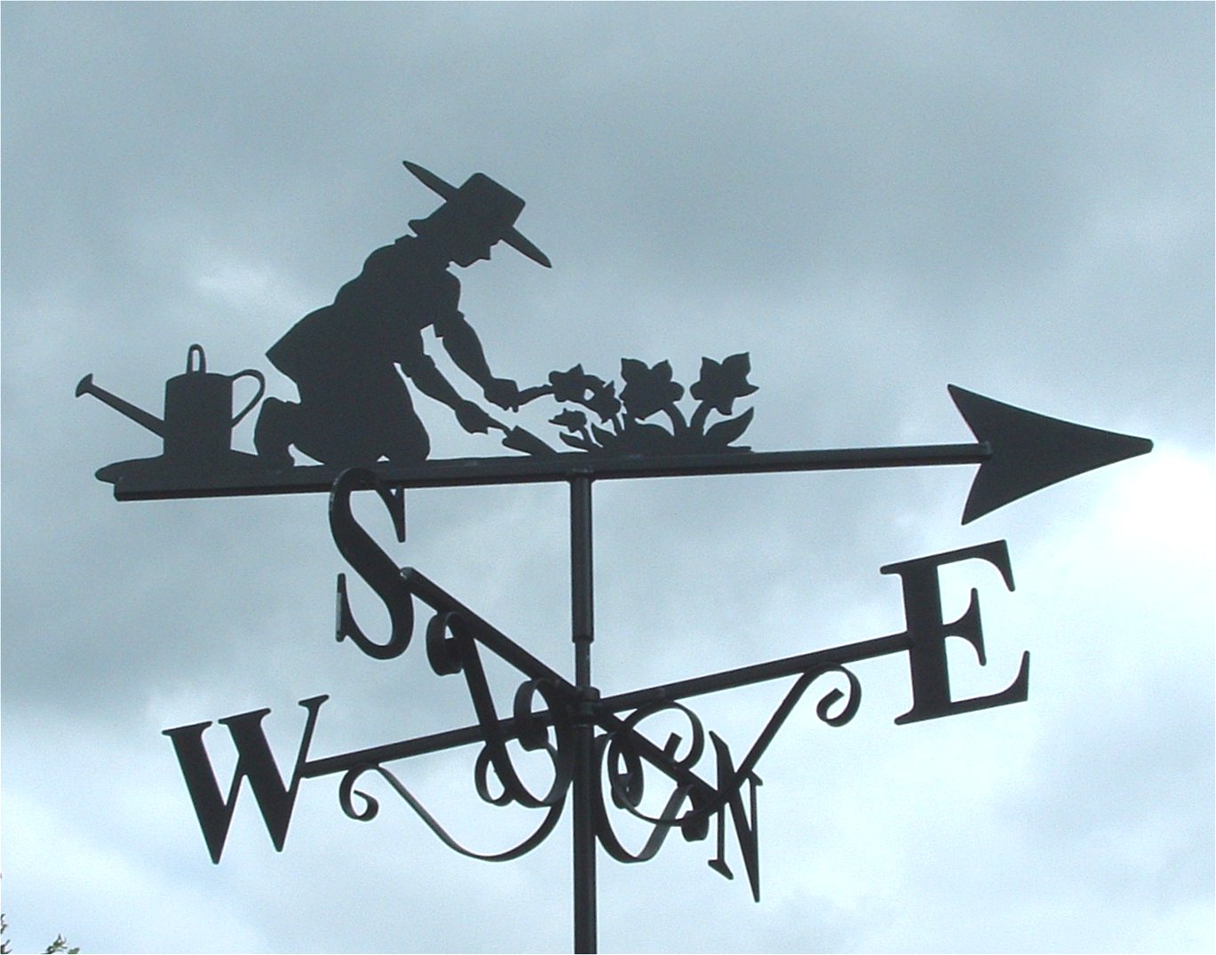 Measuring 40cm across the cardinal points N to S, this size is suitable for sheds, greenhouses pergolas, conservatories or small garages and outbuildings. Unlike our two larger sizes, Petite weathervanes have a single ended scroll.