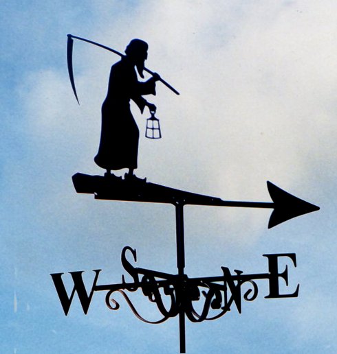 Measuring 40cm across the cardinal points N to S, this size is suitable for sheds, greenhouses pergolas, conservatories or small garages and outbuildings. Unlike our two larger sizes, Petite weathervanes have a single ended scroll.