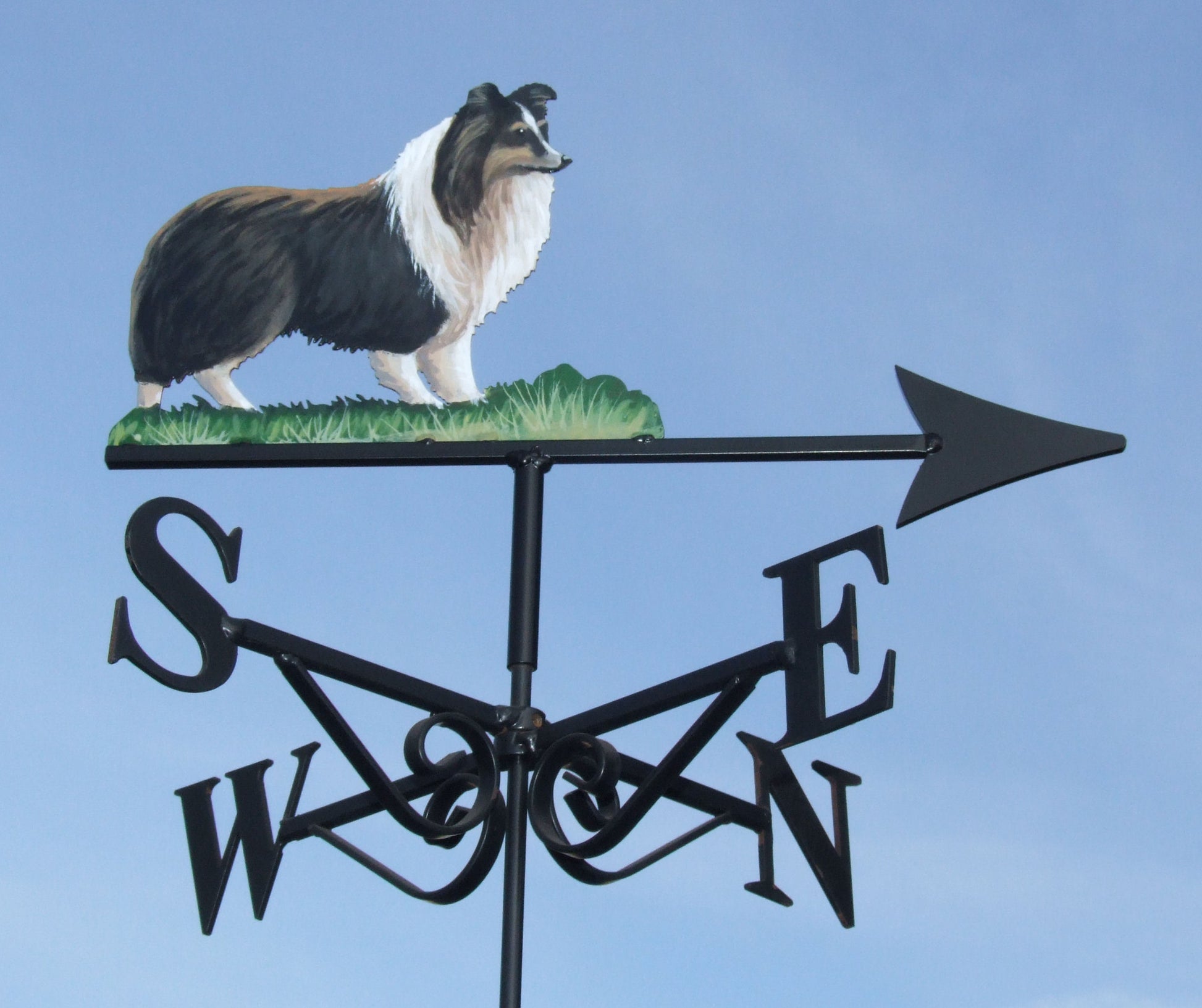 Measuring 40cm across the cardinal points N to S, this size is suitable for sheds, greenhouses pergolas, conservatories or small garages and outbuildings. Unlike our two larger sizes, Petite weathervanes have a single ended scroll.