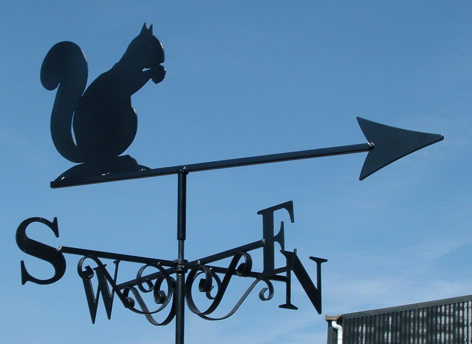Design to go on top of a wooden or metal post, these are often used on fence posts, at the centre of gazebos or garden houses. This comprises of a 12mm diameter mast (8mm for Petite) with a 2.5" square plate of 5mm thick steel.